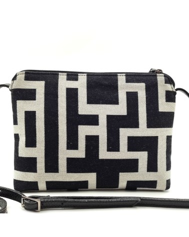 Χειροποίητη τσάντα χιαστή από την εταιρεία Forest σε αποχρώσεις του μαύρου και του μπεζ. Κατασκευάζεται στην Ελλάδα από ύφασμα, με δερμάτινες λεπτομέρειες. Διαθέτει ρυθμιζόμενο δερμάτινο λουρί. Κλείνει με φερμουάρ, διαθέτει μία εσωτερική θήκη και μία εξωτερική θήκη με φερμουάρ στο μπροστά μέρος. Μπορεί να κρατηθεί στη μέση ή στον ώμο.