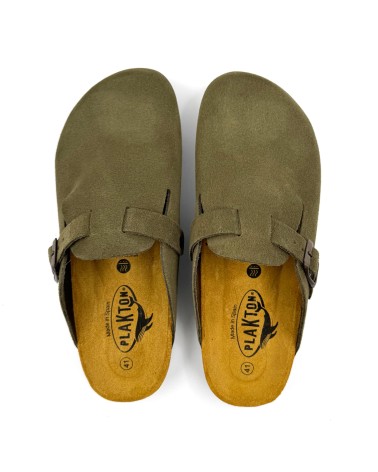 Plakton δερμάτινα ανατομικά σαμπό με memory foam πάτο. Η σόλα είναι κατασκευασμένη από φυσικό φελό. Στο συγκεκριμένο σχέδιο συνίσταται ένα νούμερο μεγαλύτερο.