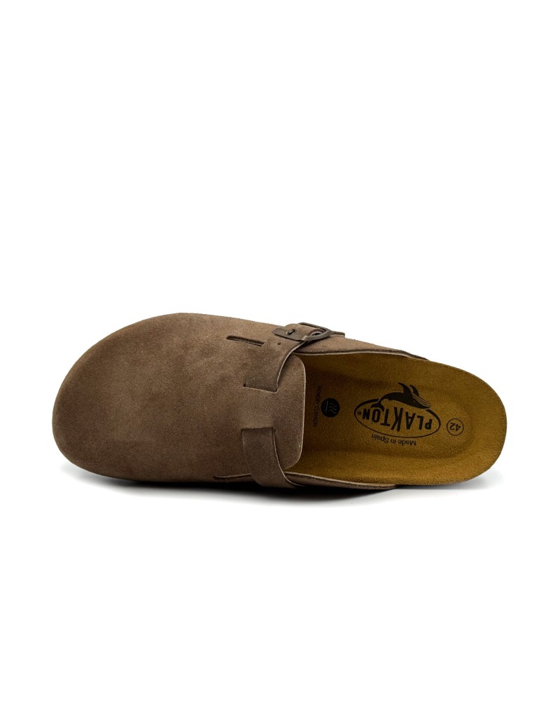 Plakton δερμάτινα ανατομικά σαμπό με memory foam πάτο. Η σόλα είναι κατασκευασμένη από φυσικό φελό. Στο συγκεκριμένο σχέδιο συνίσταται ένα νούμερο μεγαλύτερο.