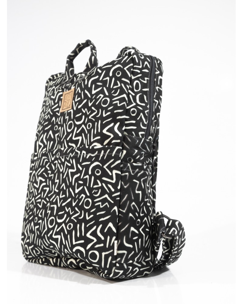 Κατασκευασμένη από υδρόφοβο καραβόπανο, δικής μας σχεδίασης, αποπνέει μια μοντέρνα αισθητική, όπου οι αφαιρετικές γραμμές στη σχεδίαση συνδυάζονται με τον μαξιμαλισμό στα μοτίβα! Είναι ανθεκτική και ελαφριά σαν πούπουλο, άρα ιδανική για καθημερινή χρήση. Όλα τα υλικά που χρησιμοποιούμε είναι vegan friendly, έχουν μόνο την όψη δέρματος, κανένα ζωάκι δεν έχει βλαφθεί!