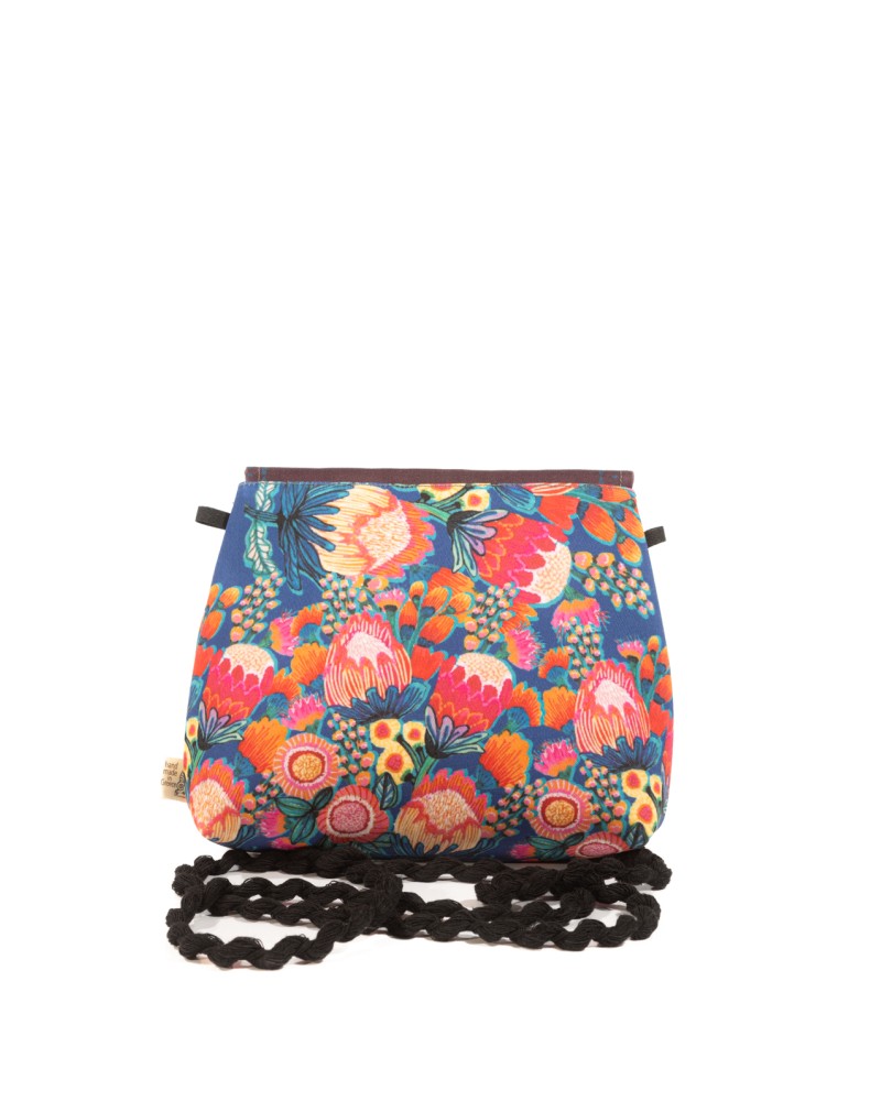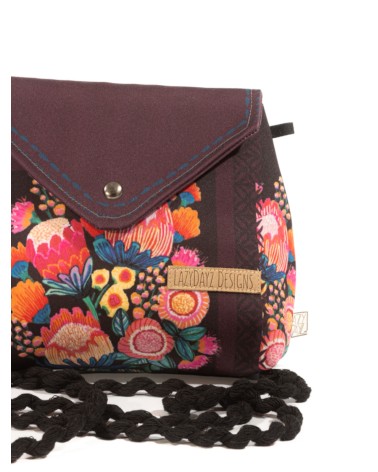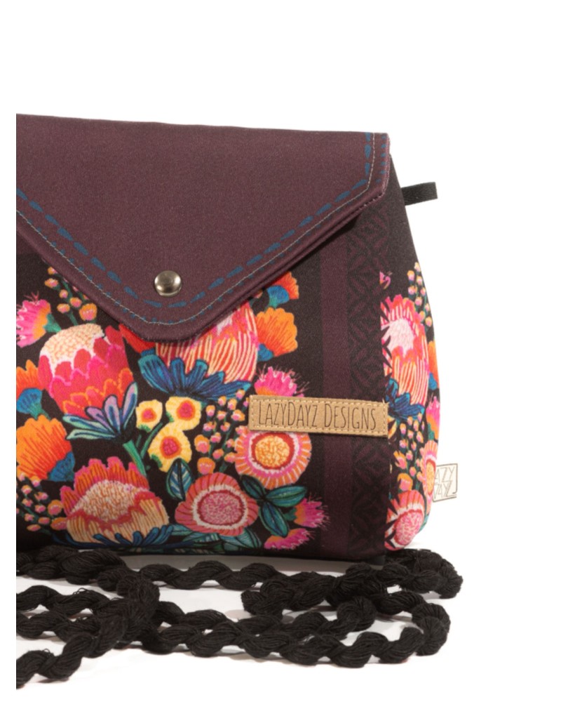 Πολύ ελαφριά τσάντα σε μικρό μέγεθος που κλείνει με κούμπωμα, έχει έναν χώρο, είναι φοδραρισμένο και συνοδεύεται από το λουράκι του το οποίο είναι από γιούτα. Είναι κατασκευασμένη από υδρόφοβο, ψηφιακά εκτυπωμένο ύφασμα, το οποίο σχεδιάζεται από την Lazydayz!
