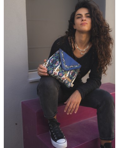Πολύ ελαφριά τσάντα σε μικρό μέγεθος που κλείνει με κούμπωμα, έχει έναν χώρο, είναι φοδραρισμένο και συνοδεύεται από το λουράκι του το οποίο είναι από γιούτα. Είναι κατασκευασμένη από υδρόφοβο, ψηφιακά εκτυπωμένο ύφασμα, το οποίο σχεδιάζεται από την Lazydayz!