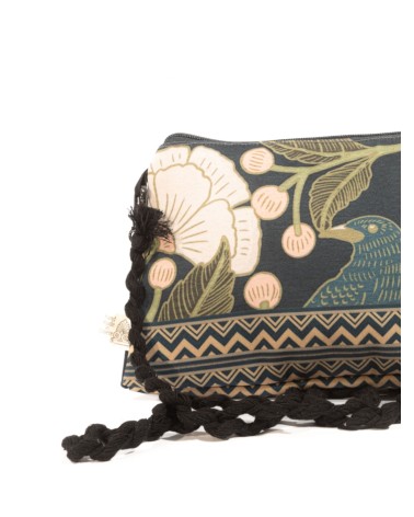 Πολύ ελαφριά τσάντα σε μικρό μέγεθος που κλείνει με φερμουάρ, έχει έναν χώρο, είναι φοδραρισμένο και συνοδεύεται από το λουράκι του το οποίο είναι από γιούτα. Είναι κατασκευασμένη από υδρόφοβο, ψηφιακά εκτυπωμένο ύφασμα, το οποίο σχεδιάζεται από την Lazydayz!