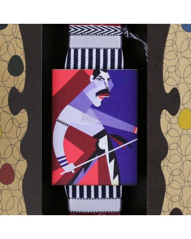 Πασχαλινή λαμπάδα 20 εκ σε συρταρωτό κουτί δώρου διακοσμημένη με αφαιρετικό πίνακα μαγνητάκι του Φρέντι Μέρκιουρι. Τα υλικά διακόσμησης είναι υψηλής ποιότητας. Τα αντικείμενα σχεδιάζονται ή επιλέγονται όχι μόνο για την αισθητική αλλά και για την αυθεντικότητα, την φιλικότητα προς το περιβάλλον και το δίκαιο εμπόριο. • Το κερί είναι αρωματικό, χειροποίητο και κατασκευάζεται στην Ελλάδα • Περιλαμβάνεται η πρωτότυπη συσκευασία δώρου με ποτηράκι για το κερί • Ύψος λαμπάδας: 20εκ. • Μέγεθος συσκευασίας: 17x5x26 εκ.