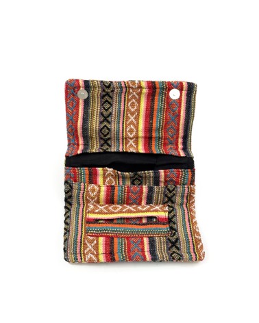 Handmade tobacco case. Inside it has 2 pockets for tobacco and filters and one for papers. Outside it has an extra pocket with a zipper.
