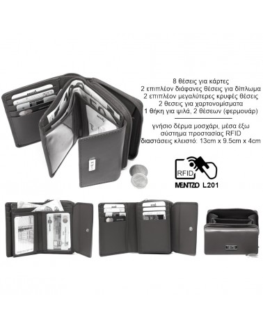 The women's wallet MENTZO CALYPSO L201 LIGHT PINK RFID belongs to the category of medium wallets, it closes easily with a button, it has many pockets for bills, coins and cards. It is made of high quality calf leather. Even inside leather, which means huge resistance to everyday open - close, unlike similar wallets that have acrylic PU inside and soon deteriorate. Its cuts and lines stand out for the perfection that leads to the perfect result.