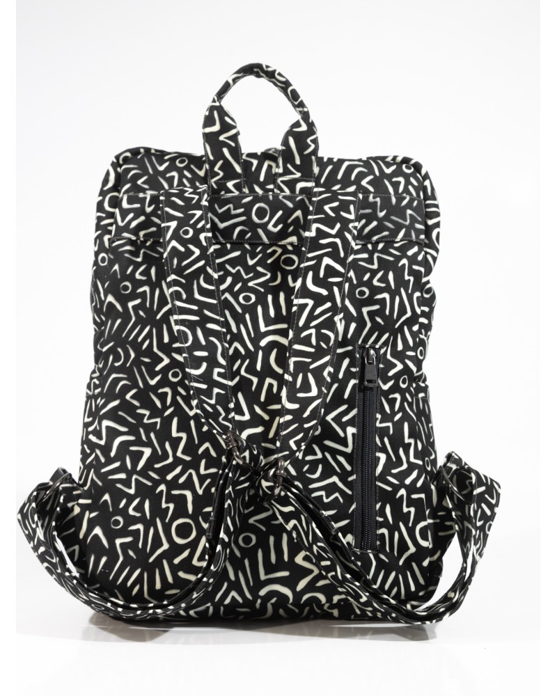 Made of our own design hydrophobic canvas, it exudes a modern aesthetic, where abstract lines in the design combine with maximalism in the patterns! It is durable and light as a feather, so ideal for everyday use. All the materials we use are vegan friendly, they only look like leather, no animals have been harmed!