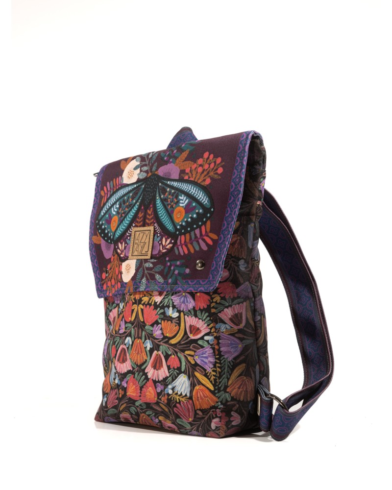 The backpack is medium in size, offering enough space to carry the things you need for a day out. It comfortably holds a few A4 size books or notebooks for the ubiquitous student, student or bookworm out there. It closes with a combination magnetic and zippered flap, securing your personal belongings.