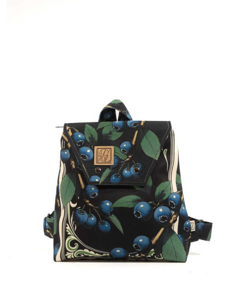 One of our bestsellers, the Nephele Blueberries backpack is a small bag, yet it offers enough space for all the essentials you need on your outings. Make a statement with this backpack, as its designs are unique and original—different on each side, even on the interior of the flap!