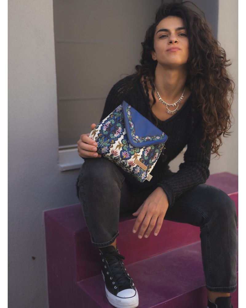 Very light bag in a small size that closes with a clasp, has a compartment, is lined and comes with its strap which is made of jute. It's made from hydrophobic, digitally printed fabric designed by Lazydayz!