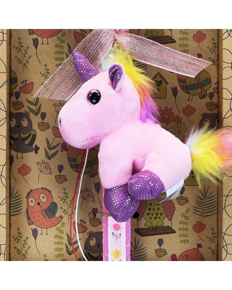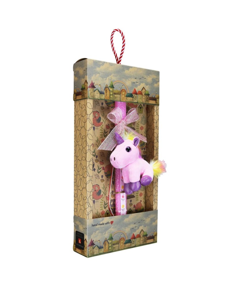 He is a unicorn, fluffy and ready to enchant you with his glamorous appearance! He can decorate your bag or store your keys in style. The decoration materials are of high quality, selected based on aesthetics, authenticity, environmental friendliness and fair trade. - The candle is scented, handmade and manufactured in Greece. - Impressive gift packaging with a glass for the candle is included. - Candle height: 30 cm. - Packaging size: 20x5.5x40 cm. - Unicorn size: 12 cm.