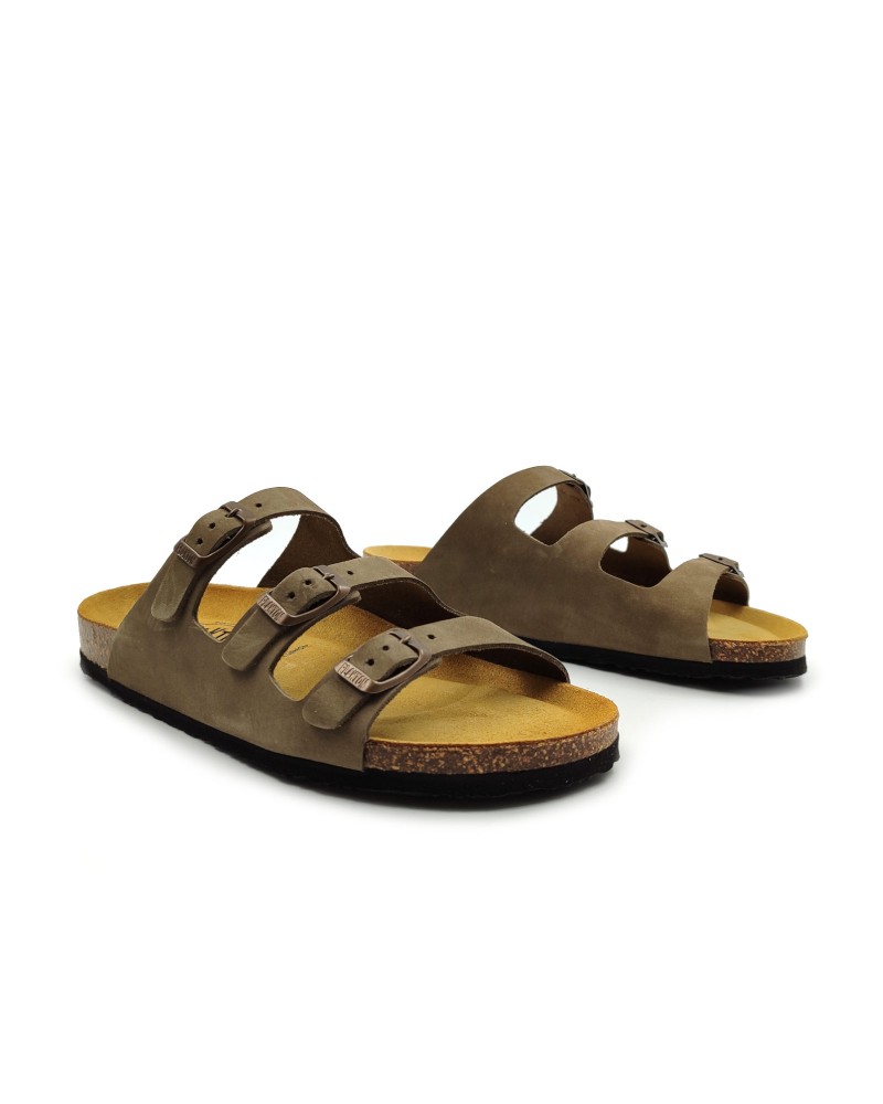 Women anatomic leather sandal of the brand Plakton. With natural cork and leather interior.