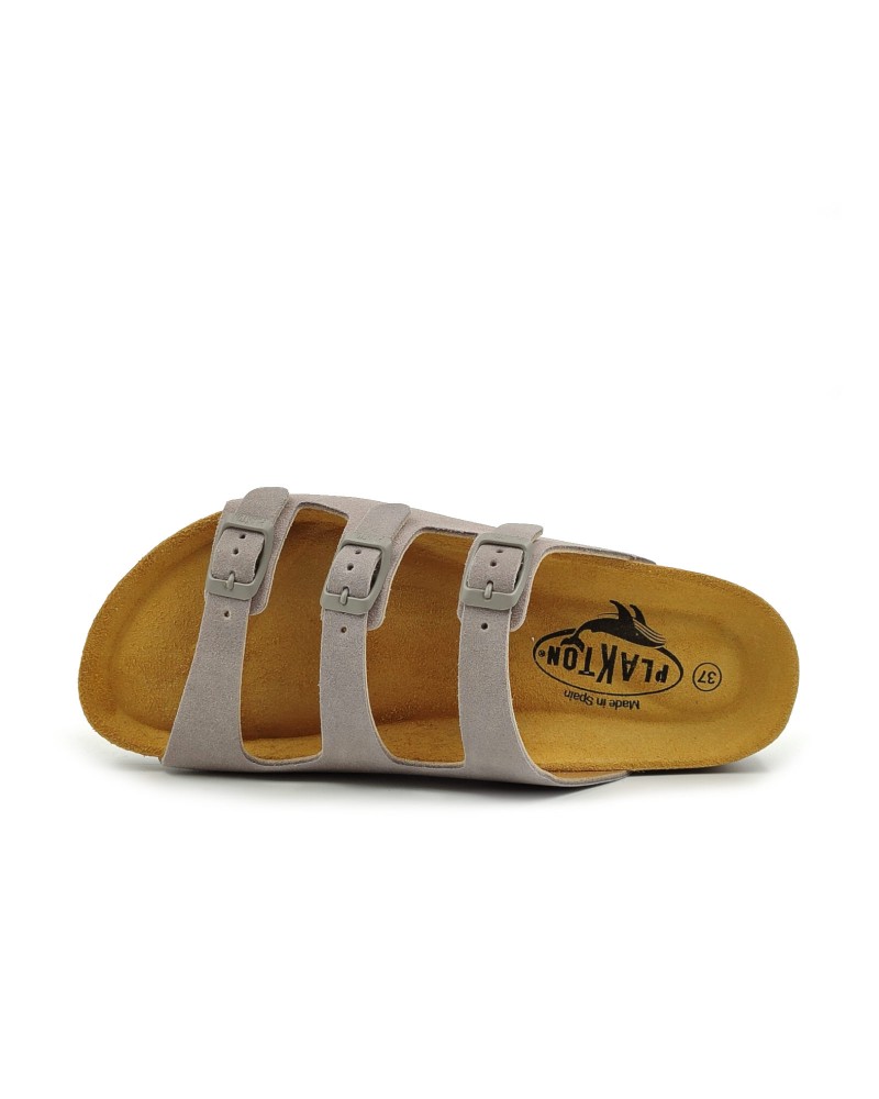 Women anatomic leather sandal of the brand Plakton. With natural cork and leather interior.