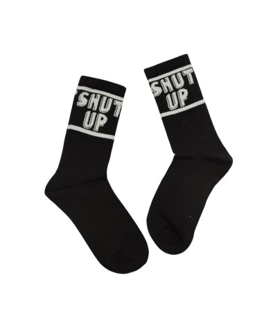 Shut Up pattern socks.